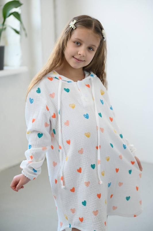 Детские пляжные туники из муслина с капюшоном 📌Ткань - муслин (100% хлопок) Размеры: 86, 92, 98,104,110,116,122,128,134,140 В детских туниках рукав на слабой резинке (даже, чтобы можно было подкачать), шнурок затянутый по контуру капюшона, пуговицы на горловине функциональные