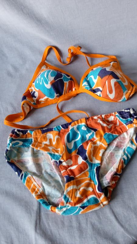 натуральный купальник,коттон, длина верхней части122,трусики пояс35 в спокойном состоянии тянется 40-42