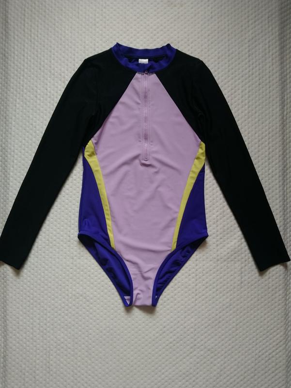 В очень хорошем состоянии. Из дефектов катышки. На возраст 14-15 лет и рост 164 см. Материал 80 полиамид и 20 эластан. Высота 71 см. Под руками 37 см и тянется до 57 см. Полуобъем пояса 34 см и тянется до 52 см, бедер 37 см и тянется до 56 см. Рукав от плеча 60 см. В плечах 31 см