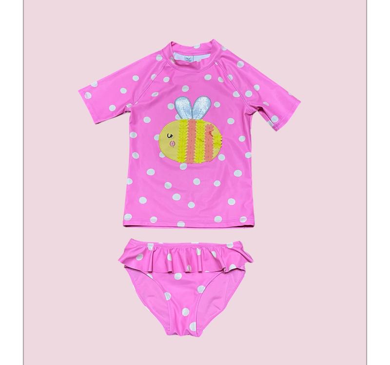 дитячий двокомпонентний купальний костюм Next Pink Strawberry Sunsafe Swim Set з принтом бджоли та білими крапками Для дівчинки 7 років 122cm Стан ідеальний