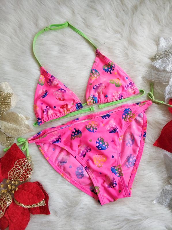 Яскравий купальник для дівчинки 10 років Charles Voegele. Стан ідеальний. Добре тянеться, заміри вказано в не натянутому стані Топ ПОГ 29см Верх регулюється Трусики ПОБ 32см Глибина 21см Торгу немає, ціна мінімальна та остаточна.