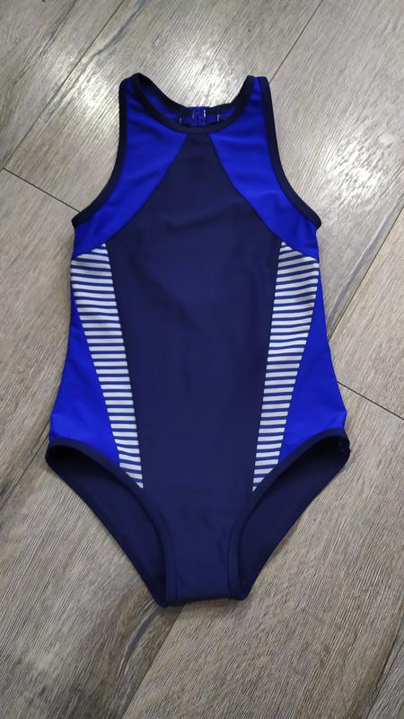 Предлагаю вам брендовое белье! Очень качественный, красивый купальник, спереди на подкладке. С застежкой на спине Купальник красивой стильной расцветки. Смотрится очень стильно! Предназначен для моря, занятия плаванием, спортом! Вещь новая, с бумажной этикеткой! Размер указан на рост 128 см на возраст 8 лет, Длина от верха до паха в не растянутом виде - 56 см, ПОГ - 34 см, тянется ПОБ - 34 см, тянется НОВЫЙ!