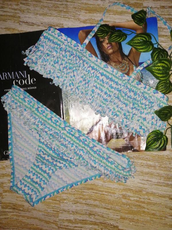 Красивий купальник з бахромою на дівчинку-підлітка , на ріст 152 ,може підійти і на дорослу дівчину на розмір xs.