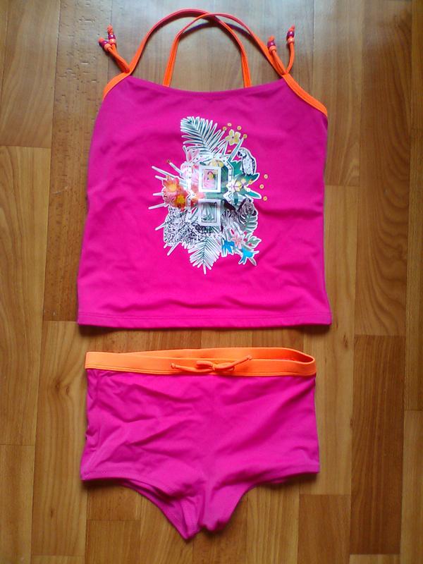 Купальник на девочку 10-11 лет, рост 146 см. Плавки: по резинке 29.5 см, высота посадки 20.5 см.Майка: в груди 32 см, длина 31 см. Производство Турция. Состояние отличное