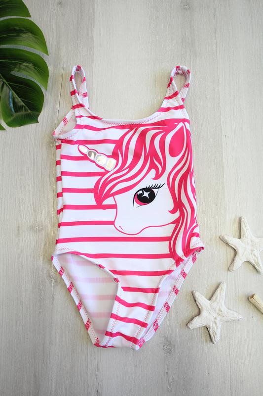 Веселий і яскравий купальник прикрашений Единорожки. Модель суцільна із закритою спинкою. Чудовий і мега зручний купальник на спекотне сонячне літо. Розміри від 92 до 146