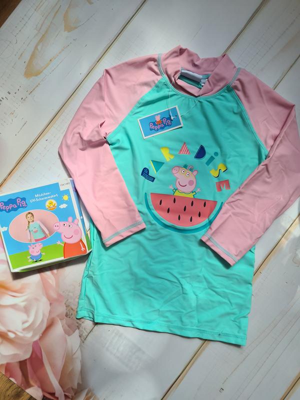 Disney peppa pig солнцезащитная футболка для купания/пляжа для девочки spf 50+ 134/140 р. Без торга. Длина полная 54см длина от плеча до низа 52 см ПОГ 33 см рукав от горла 45,5 см.