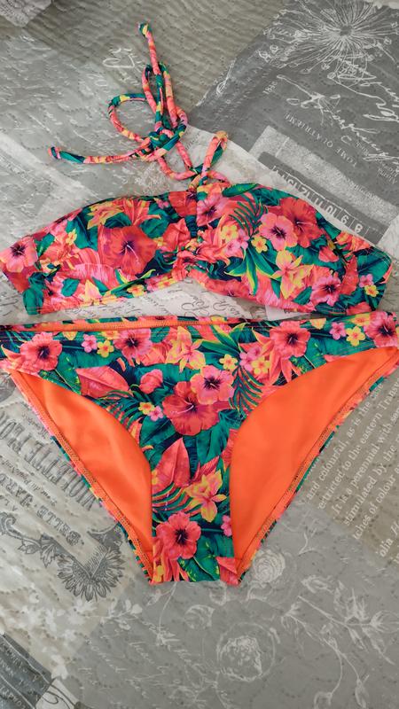состояние нового. На подкладке. Плавки :пояс полуобхват 35(тянутся до 42); глубина по переду 18; ззади 21; бюстик : под грудью 55(тянется до 65); высота чашки по центру 14.