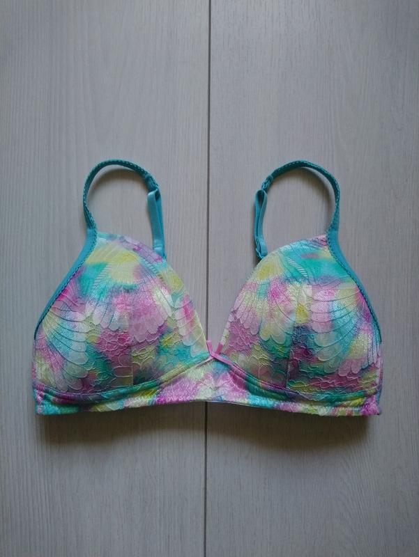 Бюстгальтер в ідеальному стані На вік 12-13 років і ріст 152-158 см Матеріал 48% нейлон, 27% поліестр, 14% віскоза і 11% еластан Довжина 55 см і тягнеться до 80 см Чашка приблизно 1