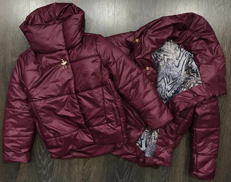 Весенняя курточка на девочку подростка. Мягкая плащевая ткань, силиконизированный синтепон 150. Плотный нейлоновый подклад с рисунком. Застегивается на потайные кнопки. Есть два кармана. Спинка удлиненная, примерно 7см. Декорированная брошь, сьоемная.