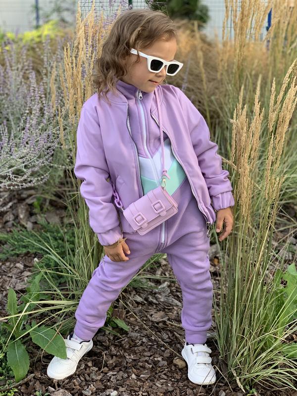 Бомбер з еко шкіри лавандовий для дівчаток осінній