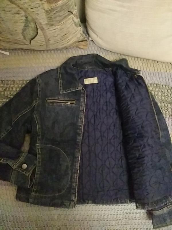 Джинсова куртка для дівчинки на стьобаному , теплому підкладі. ПОГ 37см,довжина 45см, довжина рукава 47, чотири кішеньки з яких дві на блискавці. Курточка злегка приталена.