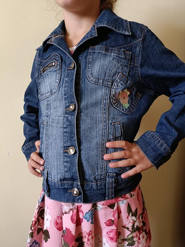 Курточка джинсова на дівчинку. Стан ідеальний. Всі гудзики защіпаються. Вік:7-9 років.