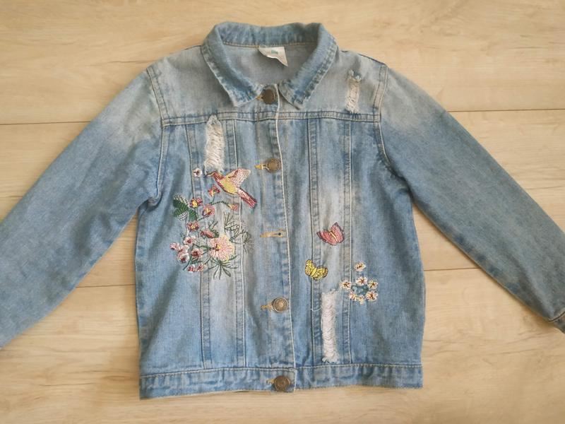 Продам лёгкую джинсовую курточку на девочку 3-5 лет. Весь рисунок на куртке вышит,джинс лёгкий,состояние общее идеальное,из нюанса нет одной пуговиц,но это легко исправить.