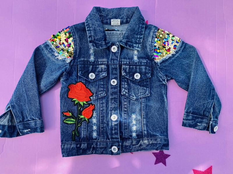 Куртка джинсова , нова, розмір 110 см. Заміри: плечі 25 см, рукав 33,5см, обхват грудей 28,5 см, довжина 36см