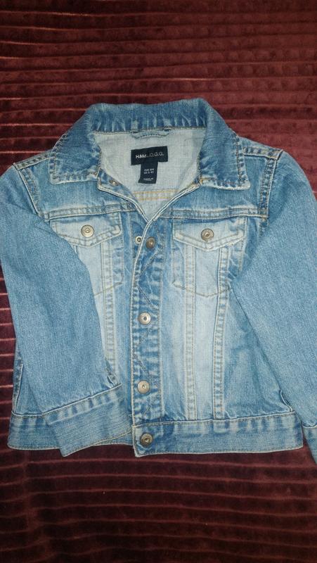 Очень классная джинсовка фирмы HM. В хорошем состоянии на 104 см Замеры Рукав от плеча 35 Плечо 10 Пог 35 Длина 37