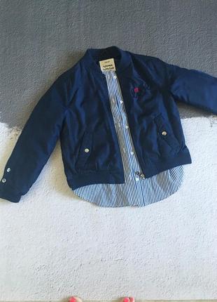 Цікавий бомбер з сорочкою. В ідеальному стані, без нюансів, але небагато катишок на манжеті. Вкладка сорочка, відстігується гудзіками. Дуже цікаво та гарно віглядає по бірці 128 см 8 років, але реально буде до 9 років 134 см заміри: довжина рукава 56 см рукав від плеча 47 см плече 10 см під руками 42 см довжина спереду без сорочкі 47 см з сорочкою 57 см довжина по спинці 46 см з сорочкою 56 см Умови оплати та доставки: ▪️ Нова пошта кожного дня, окрім неділі. ▪️ Укрпошта { по домовленності} +15 грн за упакування. ▪️ Оплата на картку 100%. або ▪️ Накладним надсилаю з передоплатою 150 грн. ▪️ Обміну і повернення не має, обдумуйте покупку. ▪️ Продаю якісні речі, про всі нюанси пишу в оголошенні. ▪️ Продаю без примірок та особистих зустрічей, тільки відправка