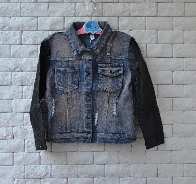 В НАЛИЧИИ Куртка джинсовая Рукава: экокожа Размер: 100 (5) дл. 39,5см, ПОГ 35см, плечи 29,5см, рукав 39см Распродажа остатков детской одежды в связи закрытием нашего магазина "СтильНяшки". Все вещи новые, с бирками нашего магазина, фабричный Китай. Фото и замеры наши