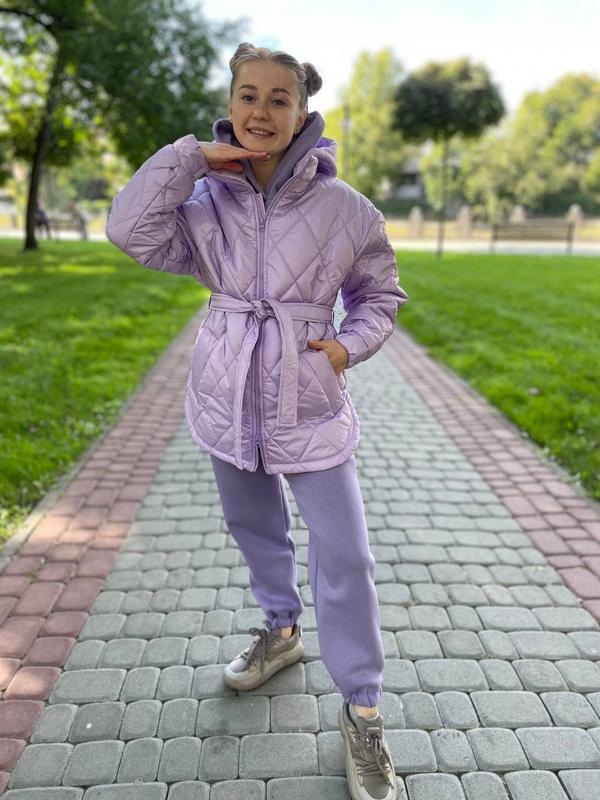 Підліткова Демісезонна курточка зростання: 146 152 158 164 Колір: бузок, пудра, чорний, бежевий, оливка. Матеріал: Плащова тканина «Richard» Підкладка: Memory oil Наповнювач: Синтепух щільністю 100г/м2 Підліткова демісезонна куртка, модель із стьобаного текстилю. Легкий утеплювач із синтепуху забезпечує захист від вітру та холоду. Капюшон регулюється, знімний (на блискавці). На рукавах манжети на резинці. На талії пояс, що регулює, з боків розміщені врізні кишені. Застібка куртки на блискавку з вітрозахисною планкою зсередини.