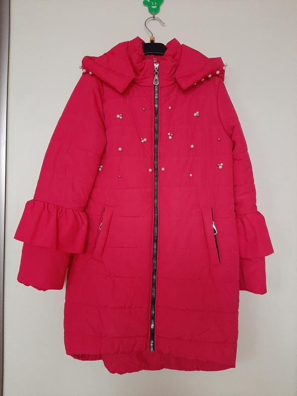 Гарна куртка рожево-малинового кольору, утеплена тонким синтипоном. Стан нової (вдягала лише 2 рази). На бірочці розмір 34 (європейка), підходить на 146, 152, 158 дитячий). Довжина по спинці - 82см Довжина рукава по зовнішній стороні - 52см ПОГ - 42см ПОБІДИ - 48см Можливий торг.