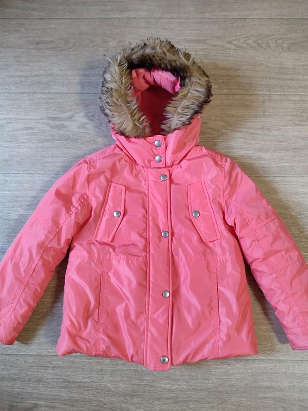 Тепла яскрава куртка Gymboree розмір 5-6 утеплена синтіпоном, а також вся куртка та капюшон, окрім рукавів з теплою флісовою підкладкою. В дуже доброму стані, лише рукавички затерті, дивіться фото довжина 44, довжина рукава 43, плечі 33, ширина під ручками 39