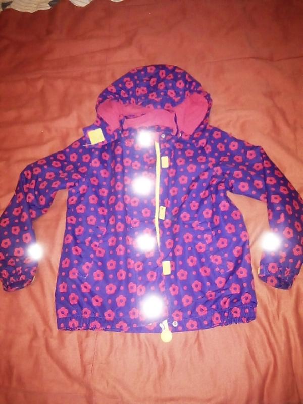 куртка для девочки 6-8 лет ветровочка не продуваемая немножко утеплена флисом для тёплой осени то что надо немного потёртые отражатели, а так состояние отличное капюшон на кнопочках можно отстегнуть