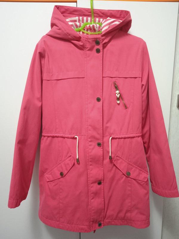 Курта з тонким утеплювачем. Розмір 146-152. Підкладка натуральна. Довжина рукава регулюються. На талії регулюються. Довжина куртки по спині 71 см., довжина сперіді 69 см. , довжина рукава від горловини 62.5 см , об"єм під пахвами 90см.