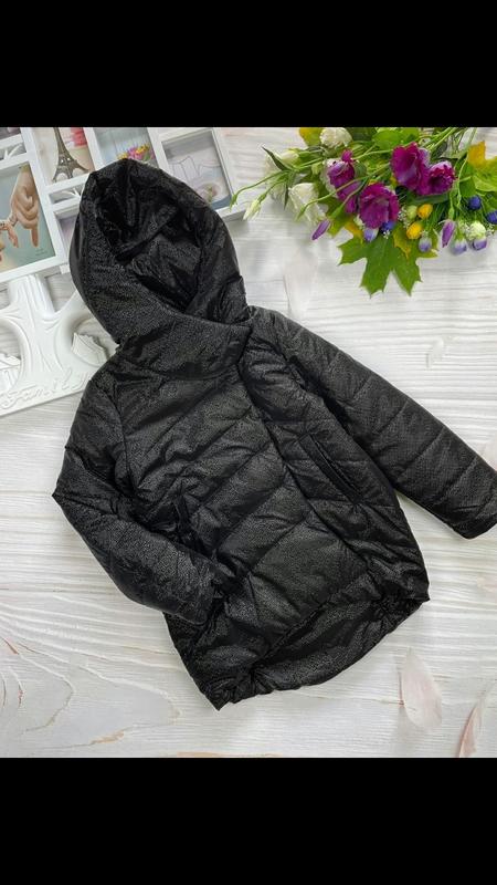 тканина плащовка, пропитка перламутр дуже гарно переливається на сонці, застібається на змійку + кнопки, синтепон 150, підкладка нейлон Колір Чорний! Заміри: довжина по переду/пог/рукав 128 - 52/39/48 С