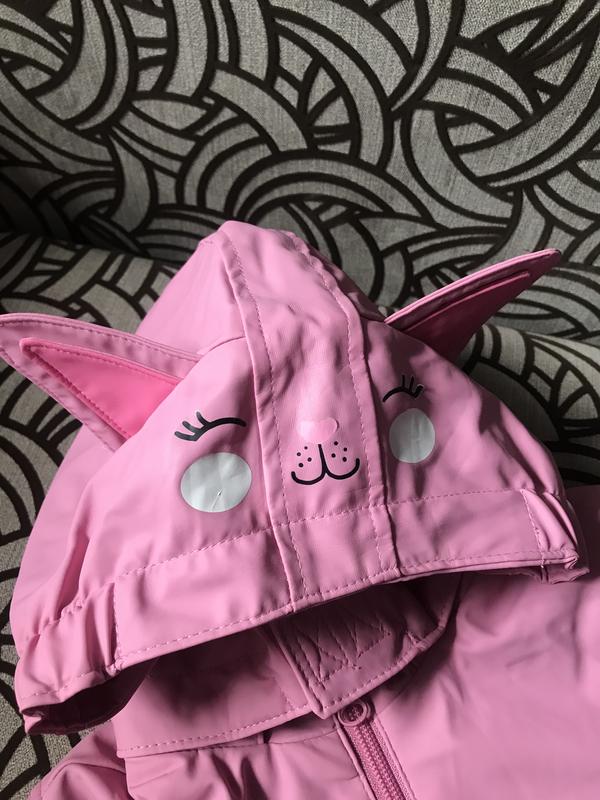 Прорезинова непродуваєма і непромокаєма куртка на флісі для дівчинки, капюшон знімається, тепло і сухо, дефект на останньому фото, в носці непомітно. В ціні врахувала. Можна оформити безкоштовно О Л Х доставку укрпоштою.