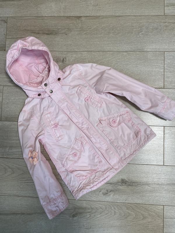 Фото на теле нет Рукава длинные снизу широкие манжеты на пуговки Застёгиваться на замок молнию и дополнительные заклепки Есть карманы Есть капюшон-съёмный Воротник стойка Есть подкладка Фасон свободный Подойдёт на 116-128 рост Фасон и цвет нежный и стильный Есть нюансы-местами незаметные пятнышки И на рукаве под бантом полоска На фото всё указано Куртка модная и брэндовая (Нюансы в цене учтены)