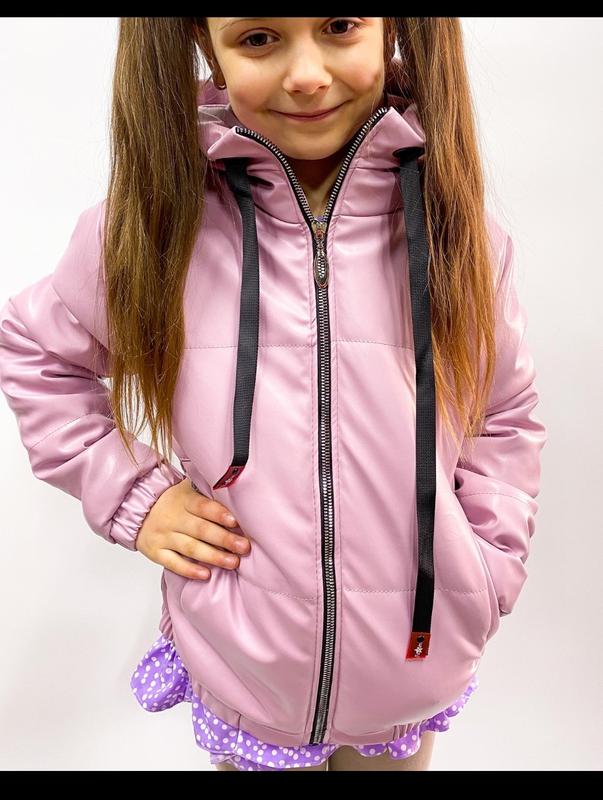 Демісезонна підліткова куртка для дівчаток з еко- шкіри під резинку 8-12 років