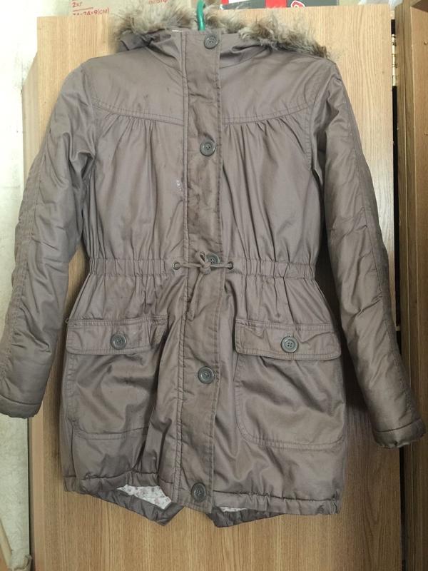 Утеплена куртка зверху тканина яка не промокає. Трохи потерті рукава .