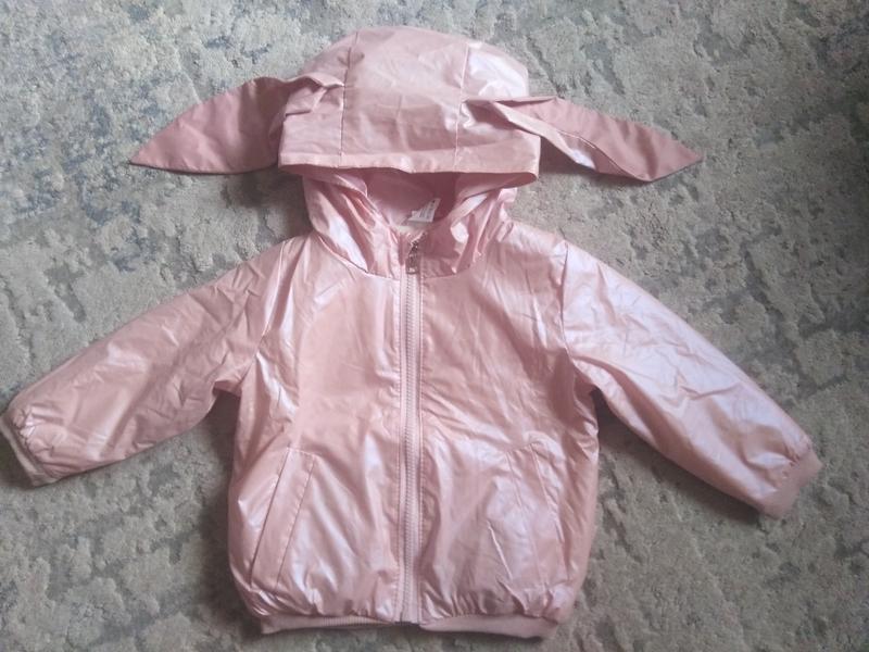 Вітрівка для дівчинки, по бірці на зріст 98см, але можна носити і раніше. В середині підкладка з флісу. Зовнішній матеріал хамелеон, ніжно-рожевого перламутрового кольору на сонці переливається трошки фіолетовим. В стані нової речі. Орієнтуйтеся по замірам: довжина 37см, ширина 35см, рукав від шву 31см, від горловини 37,5см