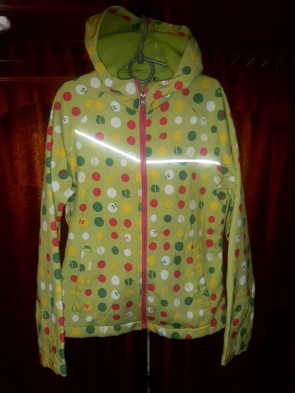 Яскрава курточка на зріст 146-152см. Довжина 54см, рукав від горловини 63см, рукав по внутрішньому шву 44см, ширина підпахви 44см Підкладка фліс.. 74.