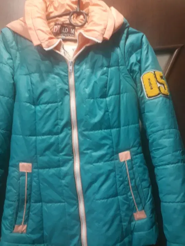Демісезонна куртка з капюшоном бірюзового кольору в хорошому стані. Відстібаються рукави, блискавка в порядку. На етикетці розмір 44, але вона на худеньку дівчину. Довжина 63-65 см, рукави 62 см.