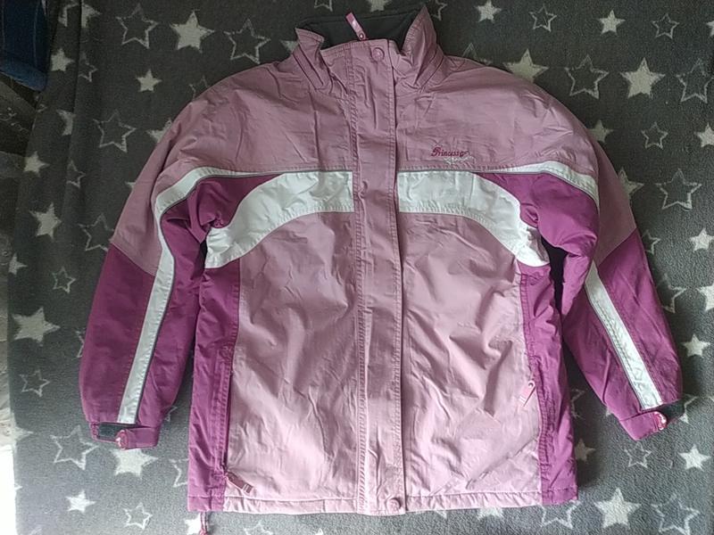 классная термокуртка р146/152 Princessaf флисовая подкладка, защита от снега замеры- длина по спинке-62 см ширина под проймой-51см длина рукава от воротника 63см, от плеча-52см капюшона нет
