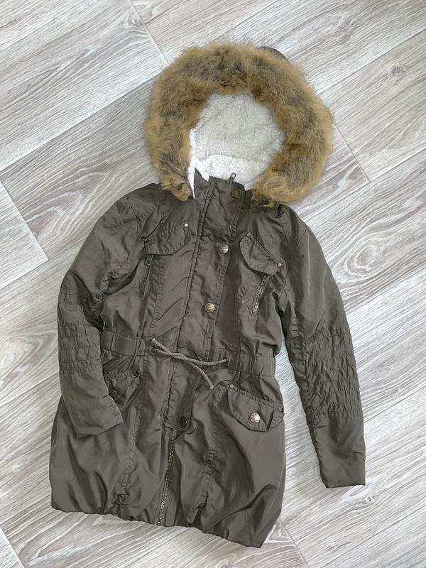 межсезонная удлененная куртка на подкладке махра/ткань, 5-6 лет Некст длина 57. ПОГ 38. рукав 42
