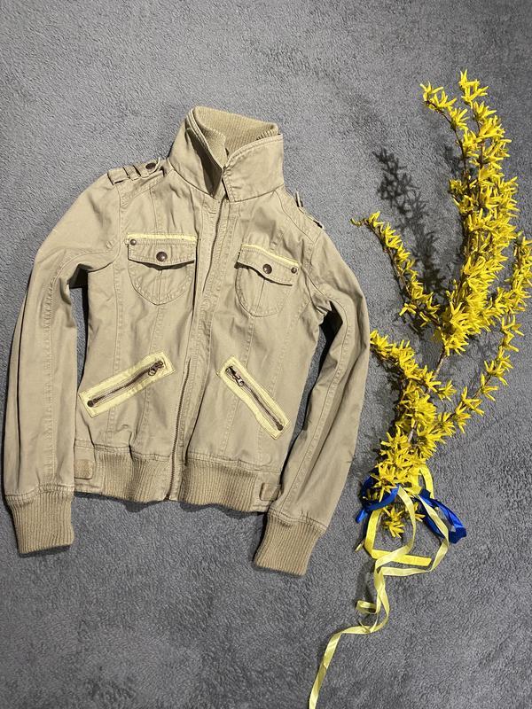 Фото на тілі немає Закривається на замок Плотность середня Знизу і на рукавах манжети Воротник двойний стойка і рубашка Є кишені Довжина 53 см) Плечі 37 см) Пог 46 см) Пот 41,5 см) Знизу 42 см) Рукав 60 см) З нюансів-відчинений слой напилення краски-шкіри з лотків і біля блискавок не критично у ціні враховано Підійде на 9-14 років оріентуйтесь по замірам