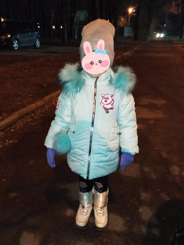 Зимняя куртка для девочки, по бирке 110 размер. Мы носили дольше. Молния работает исправно, лишь ближе к верху немного заедает. Капюшон отстегивается. В целом, состояние хорошее. Замеры сделают по запросу. Укр-бытой отправки бесплатно.