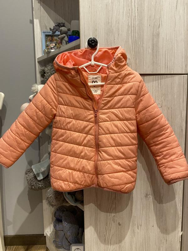 Курточка дуже легка,але й тепла,при денному світлі ніжно персикового кольору,на вік 4-5 роки