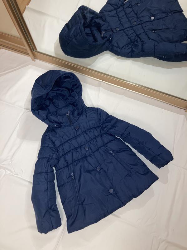 Куртка Benetton 3-4 роки. Стан ідеальний. Утеплена чи то синтепоном, чи холофайбером, точно не знаю, дуже якісний утеплювач, не збивається. Легесенька і тепла куртка, будете задоволені. Заміри: довжина 43 см, ширина в грудях 30 см і тягнеться, бо там резиночки, рукав 38 см. Два кармана на замочку. Капюшон на кнопочках.