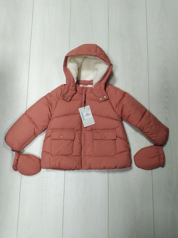 Куртка дитяча англійського бренду Primark. Колір - теракотовий. . Рукавиці. · Плюшева підкладка всередині куртки по всій довжині. · Дві накладні кишені зовні для рук. · Незнімний капюшон з м'якою, теплою плюшевою підкладкою всередині. · Застібка – блискавка. Сезон - осінь, зима. В наявності розмір на зріст 98см