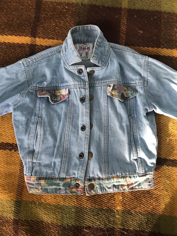 Мена стильна олдскульна) курточка на дічинку 3-5 років. Довжина 37,5 см Під пахвами-41 см Рукав-32 см Є кілька майже не помітних в носці плямочок