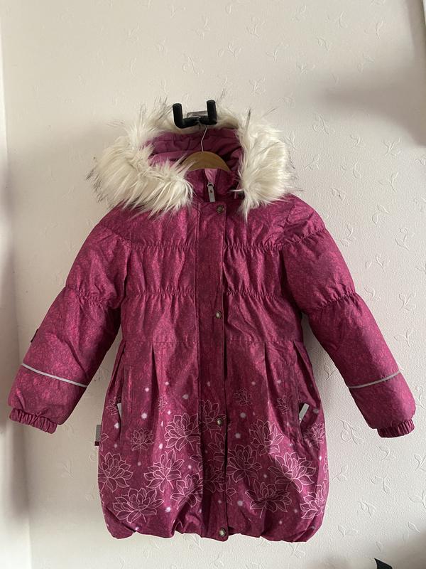 Куртка дівчача розмір 122, заміри на фото. На молнії та кнопках, капюшон знімається ( хутро також можно зняти з капюшона) Ньюанси - затерті рукава (на фото)