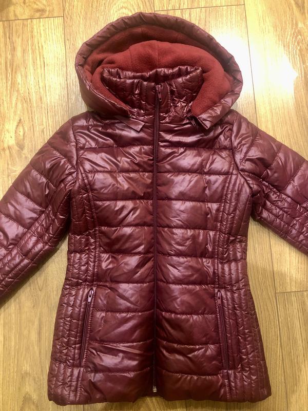 Куртка в ідеальному стані, утеплювач -фліс, не заношений. Довжина куртки 56 см, довжина рукава 42 см. Колір бурдовий. На ріст 122-128 см.