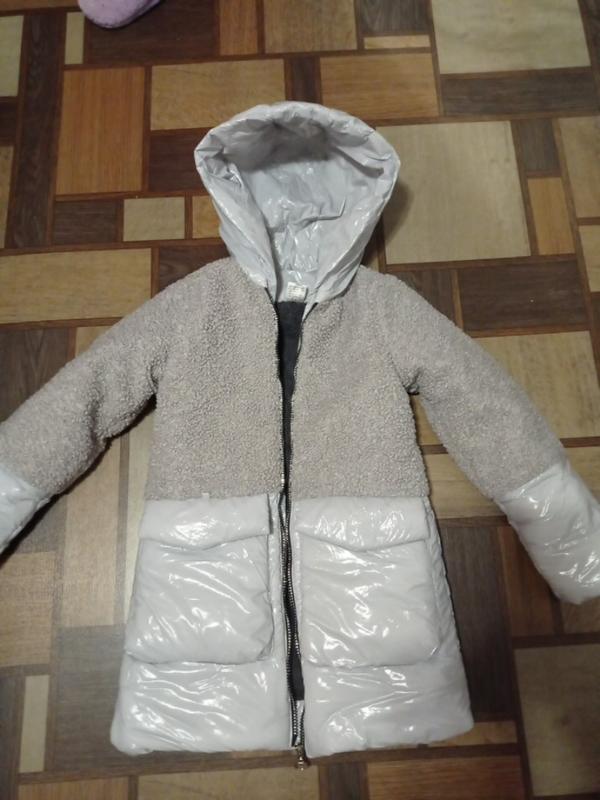 Нова хутряна куртка для дівчинки.Утеплювач тінсулейт, зсередини штучне м'яке хутро,тканина відтворення, глибокий капюшон мірки довжина 66см рукав 53 см плечі 32 см напів обхват грудей 41 см виміри зроблені ззовні