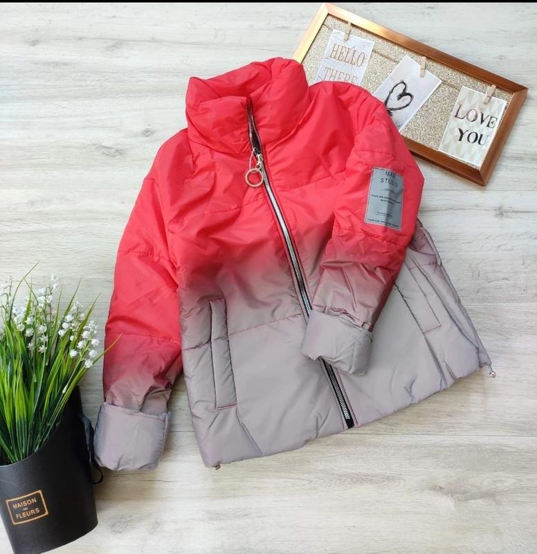Крутая демисезонная курточка градиент Ткань светоотражающая плащевка -неон Наполнитель синтепон 150 Внизу имеется утяжка 140р (2 шт) длина 57, пог 45, рукав полностью 52