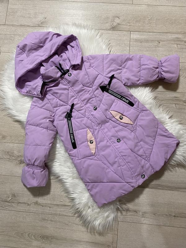 Фото на тілі нема Застегивается на молнию Рукава длинные на них резинки тонкие и декоры рюши Есть карманы Есть капишон Фасон удлиненный )стеганная сиреневого цвета Удобная теплая Подойдет на 5-7 лет ориентуйтесь по замерам Из нюансов -есть маленькие пятна дырочка и незначительное взбитие все указано на фото поэтому цена ниже: Длина 65-69 см) Плечи 33 см) Рукав 46,5 см) Пог 40 см) Пот 41 см) Снизу 50 см) 54,5 см длина рукава от шеи. Утеплитель искусственный Продается без возврата/ Детали уточняете, чтобы потом не получила недопонимания/