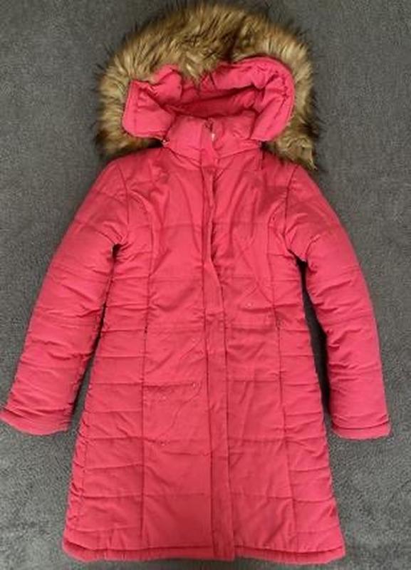 Фото на тілі нема Є кишені на блискавках Застібається на блискавку Стьоганна з візерунками і маленькими камінчиками Тепла Є капішон зьйомний з хутром Підійде на 7-10 років оріентуйтесь по замірам З нюансів Є незначні сліди від ручки І замінювався бігунок на блискавку,незначні нюанси у ціні враховані Продається так як є без притензій і без повернення Довжина 72,5 см) Плечі 36,5 см) Рукав-48 см) Пог 40,5 см) Піт 39 см) Побіди 41,5 см) Знизу 49 см)