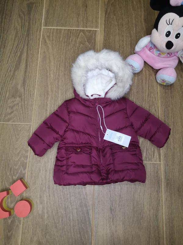Тепленька курточка на бейбіка, дівчинку від відомого бренду Primark. Верх вітро -, водовідштовхуючий. Утеплена синтепон ом і хутряною підкладкою. Капюшон теж утеплений хутром, не знімається. Розмір 0-3міс (62см) Заміри : довжина рукава від горловини 25см, нижній шов рукава 13см, пог 28см, довжина 32см. Якість супер. Додаткові фото, заміри надам по проханню.