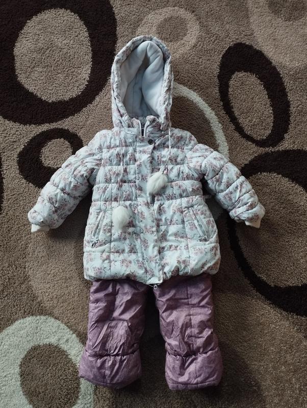 Комплект зимовий на дівчинку Стан ідеальний Без плям і дірок Дуже теплий, манжети щільні на рукавах і внизу штанів, додатково утеплення на овчині йде , можна його від стібнути,капюшон на замку заміри куртка: довжина 43, ширина 32, рукав від плеча 32 + 5 см манжет штани: шаг 32, посадка 22,